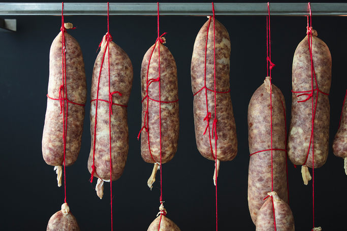 Toute notre viande et charcuterie provient de notre élevage, élaborée par nos soins, de façon traditionnelle, sans colorant et sans nitrite . Tous les ingrédients frais proviennent de la Ferme Lyonnaise. Pour les épices et les aromates que l’on ne peut retrouver localement, nous sélectionnons leur qualité : le poivre noir de Malabar (Inde) , ail de France et sel de Camargue. Vous pouvez retrouver l’ensemble de notre gamme au magasin, réapprovisionné 2 fois par semaine, pour vous garantir la fraicheur des produits.