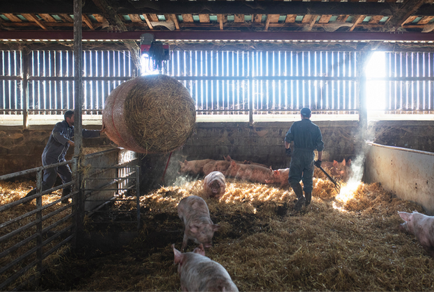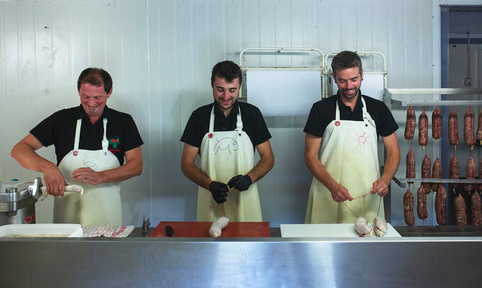 Nous, Alain, Aurélien et Clément sommes trois associés, paysans-éleveurs.